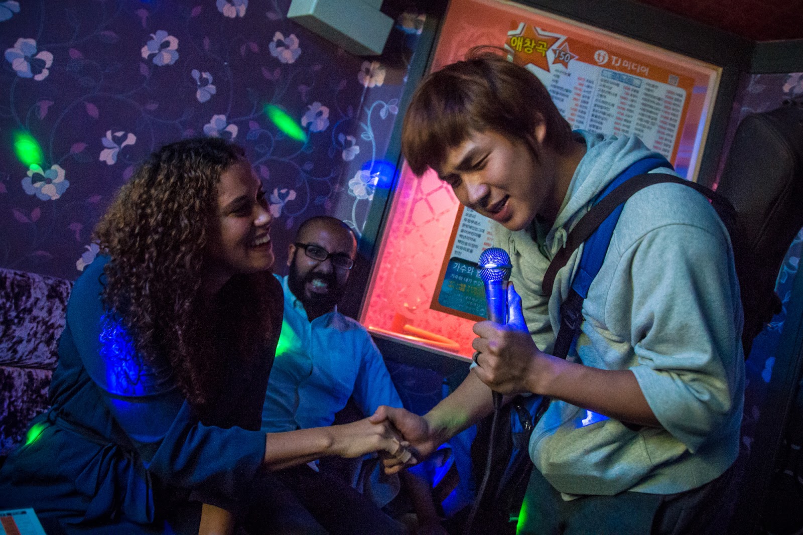 | Impromptu sing-song in a convenience store whilst buying soju. |